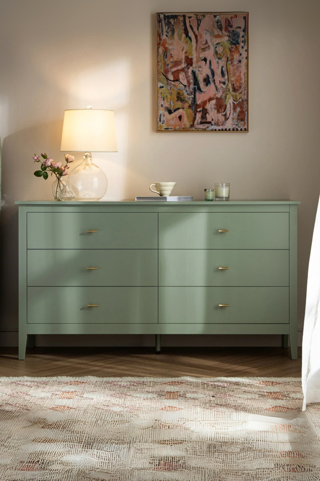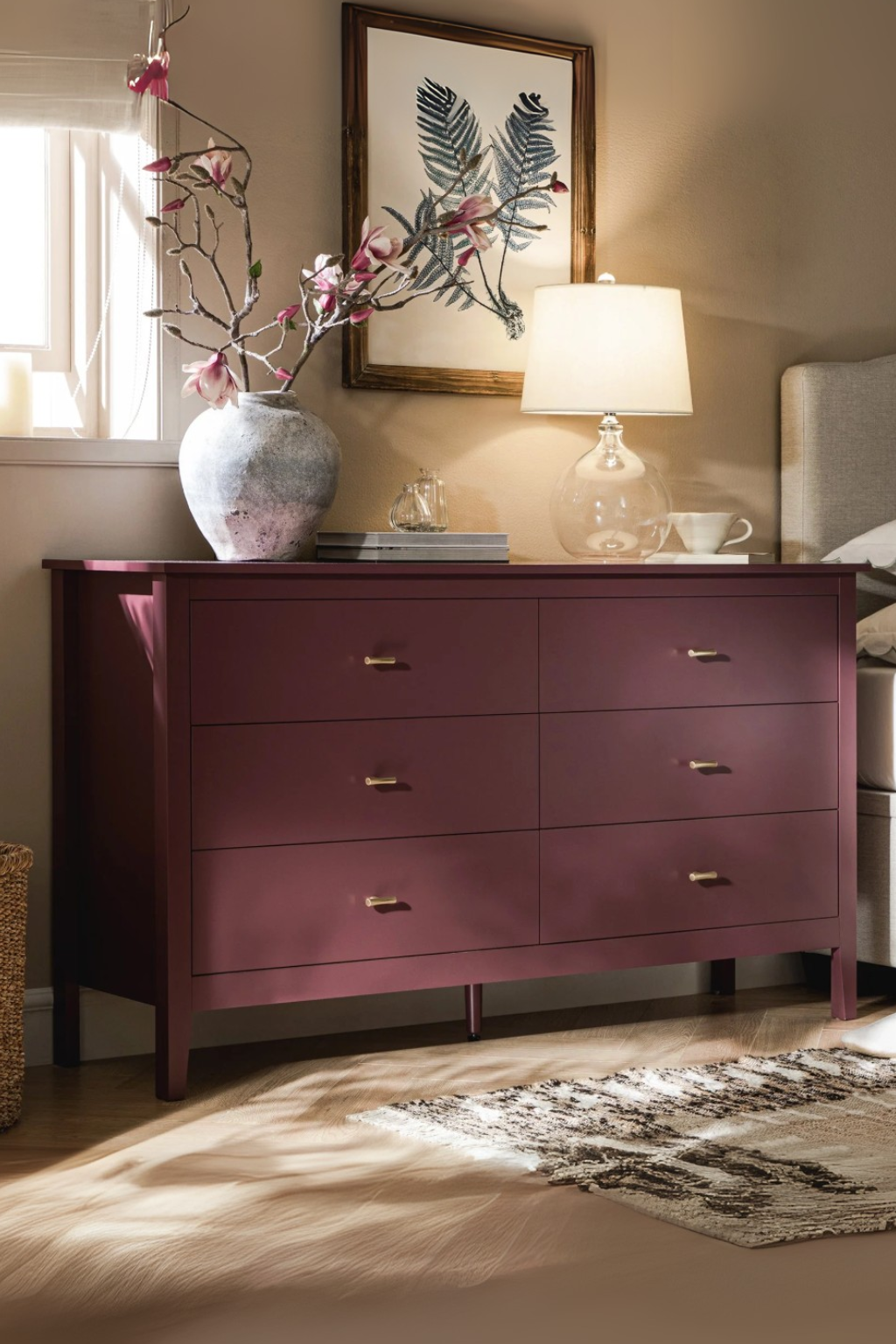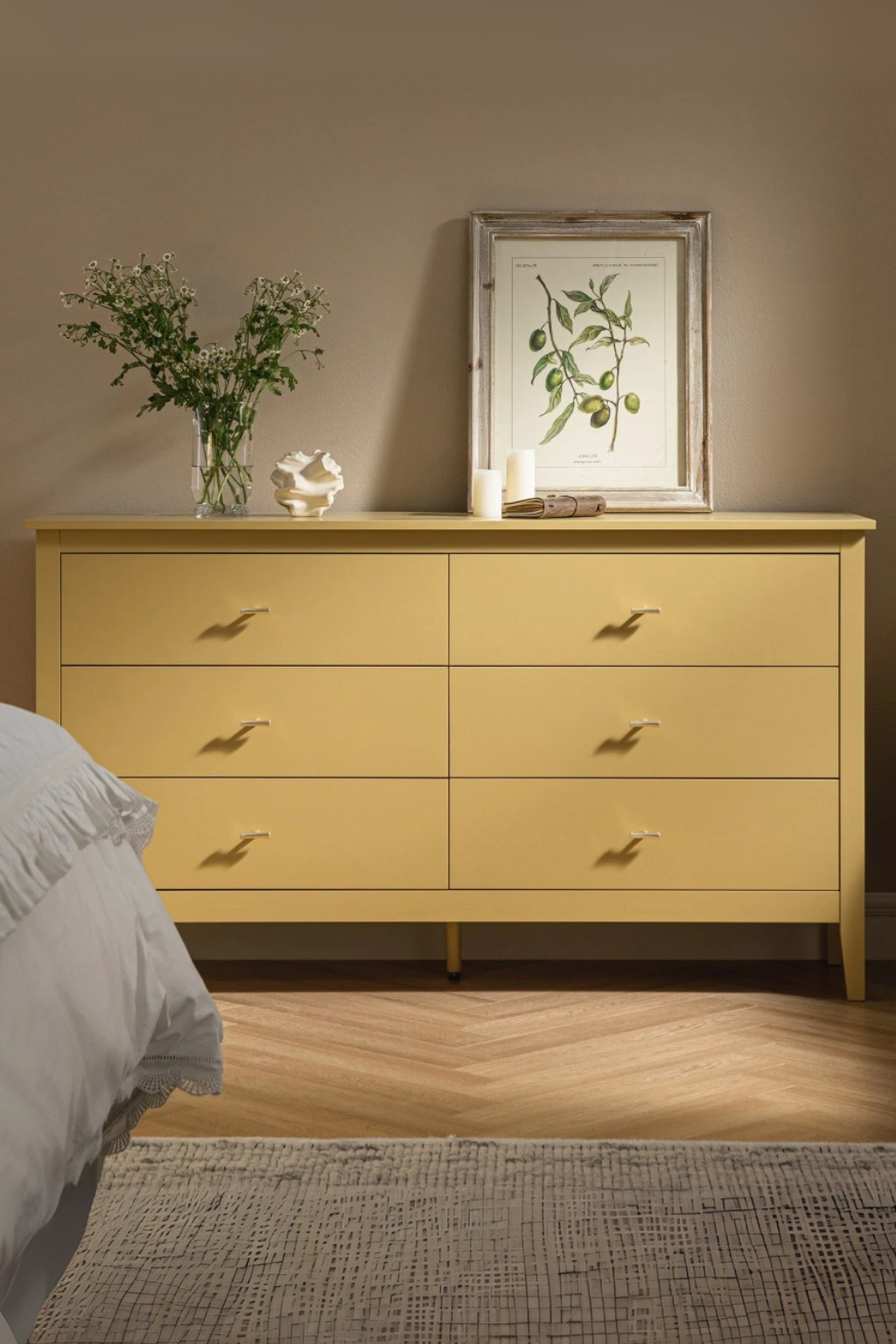 The Patnam 6 Drawer Chest features smooth-glide drawers complemented by elegant golden handles, combining functionality with a touch of sophistication. With customizable finish colours, this chest allows you to personalize its look to seamlessly enhance any room’s aesthetic while providing reliable and stylish storage.