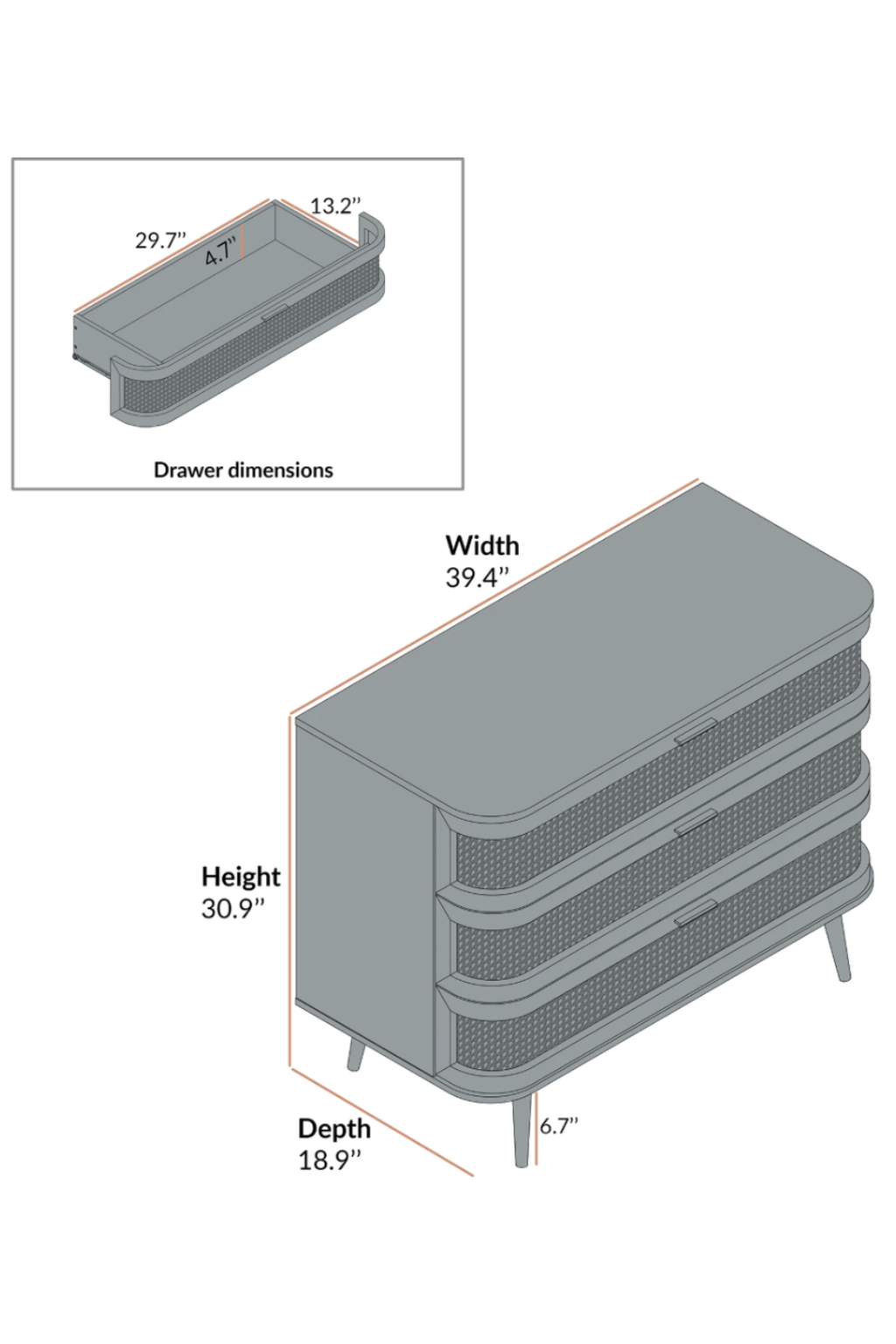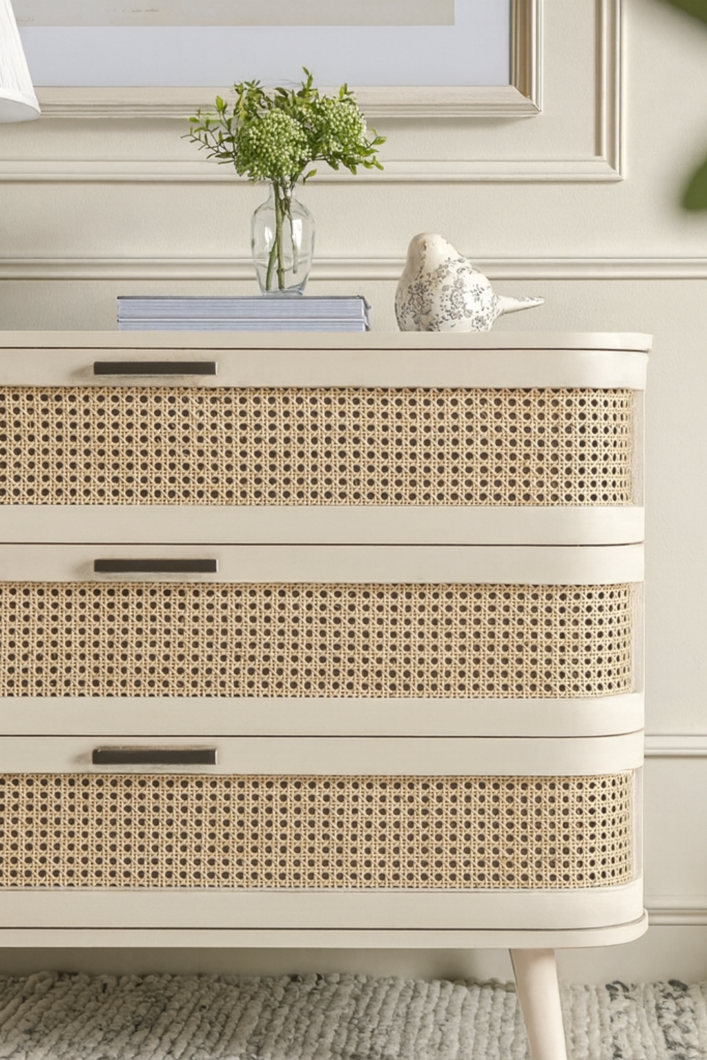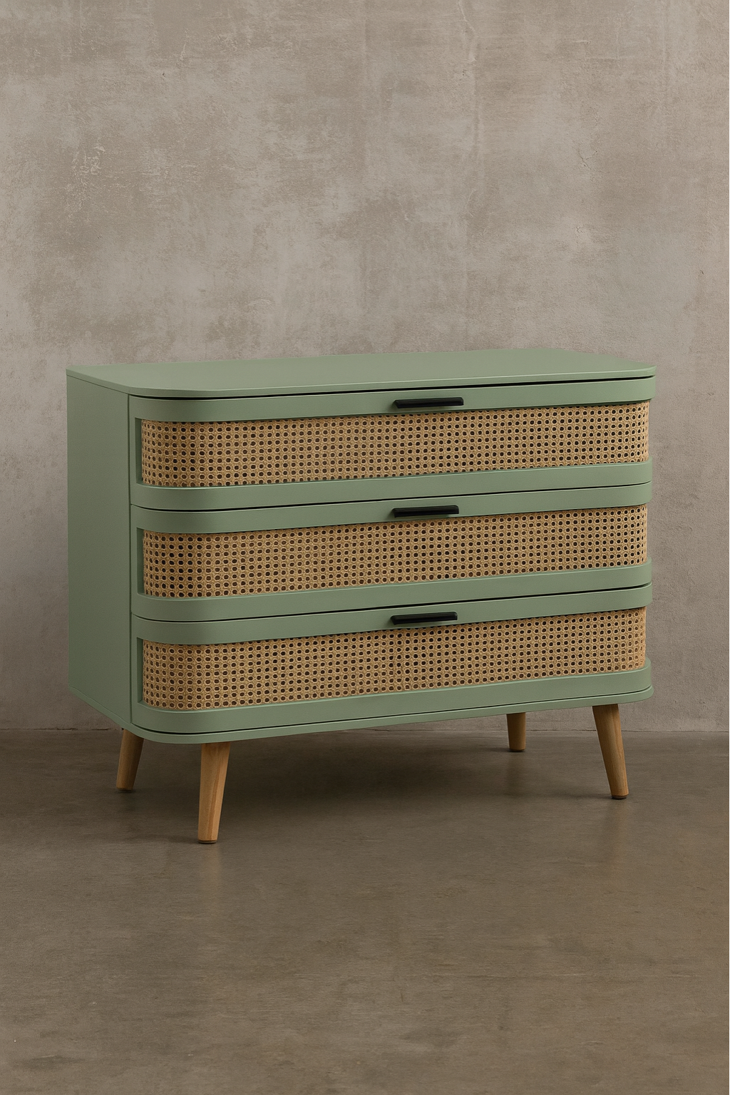 The Ranchi 3 Drawer Chest combines elegant curved wood craftsmanship with a refined rattan design, offering both style and practicality. Equipped with durable Hettich mechanisms, the drawers ensure smooth and reliable operation. This piece adds timeless sophistication to any room while providing organized storage with ease and longevity.