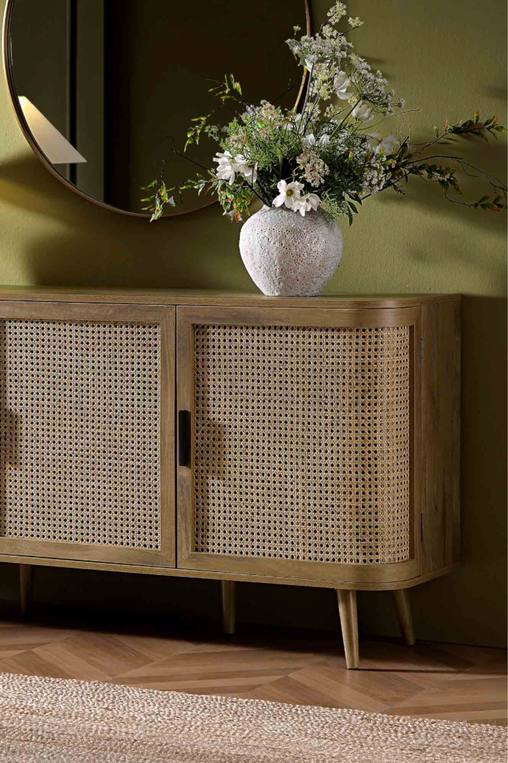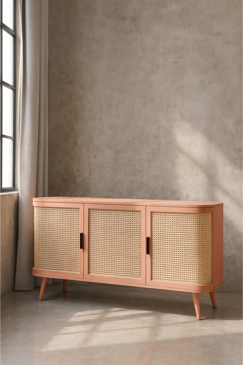 The Ranchi 3 Door Sideboard offers a spacious design with three wide doors, providing ample storage for organized living spaces. Crafted from quality wood, it ensures durability and a refined finish. Equipped with reliable Hettich mechanisms, the sideboard guarantees smooth and long-lasting operation, making it a robust and functional addition to any room.