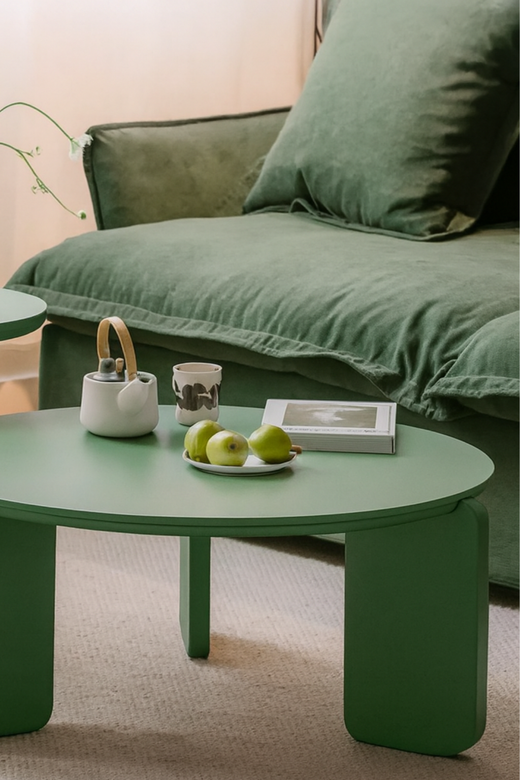 The Sikra Coffee Table boasts a circular design supported by three stylish legs, offering both elegance and stability. Its versatile construction includes an optional marble top, providing a luxurious finish that enhances durability and adds a sophisticated touch to any living space.