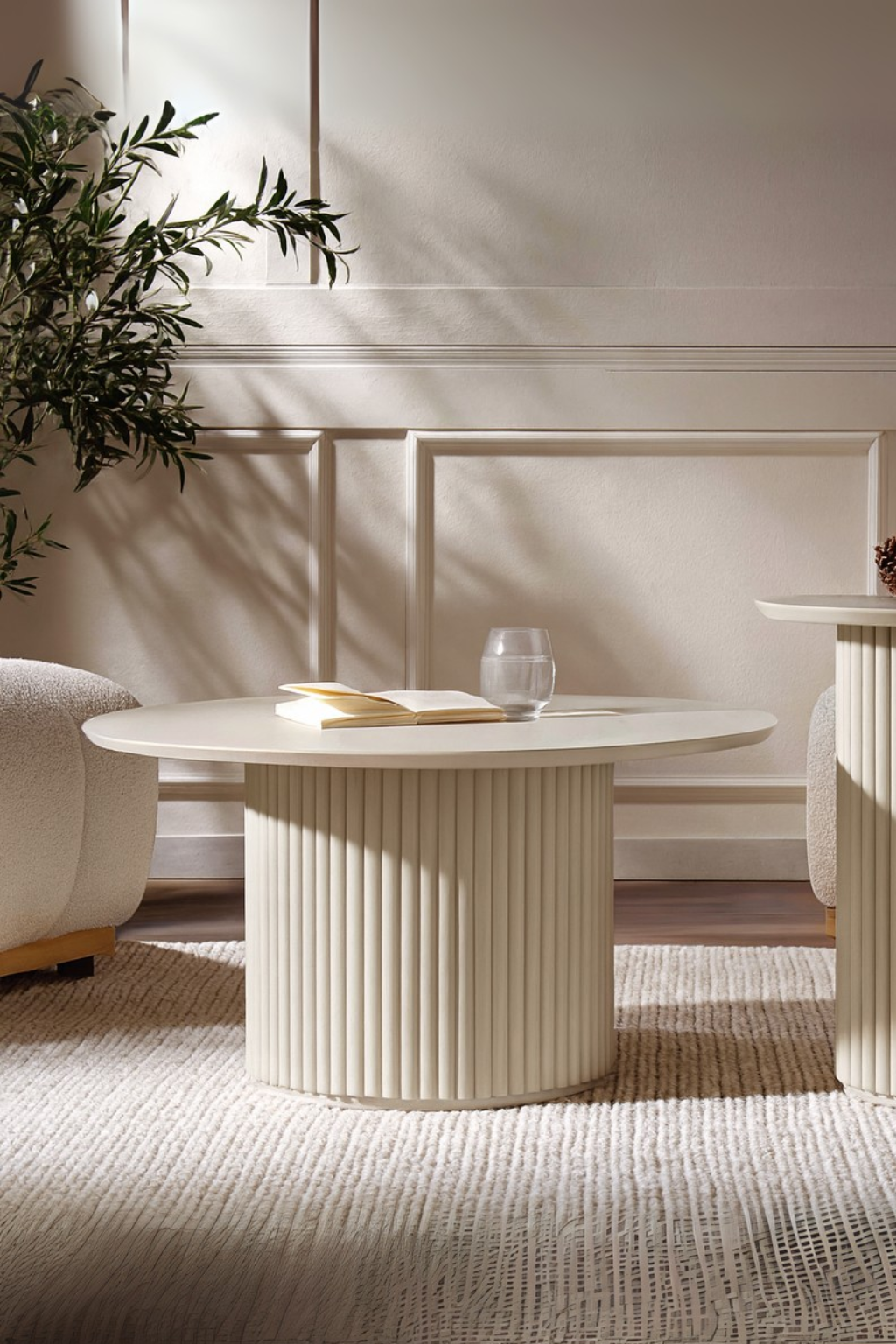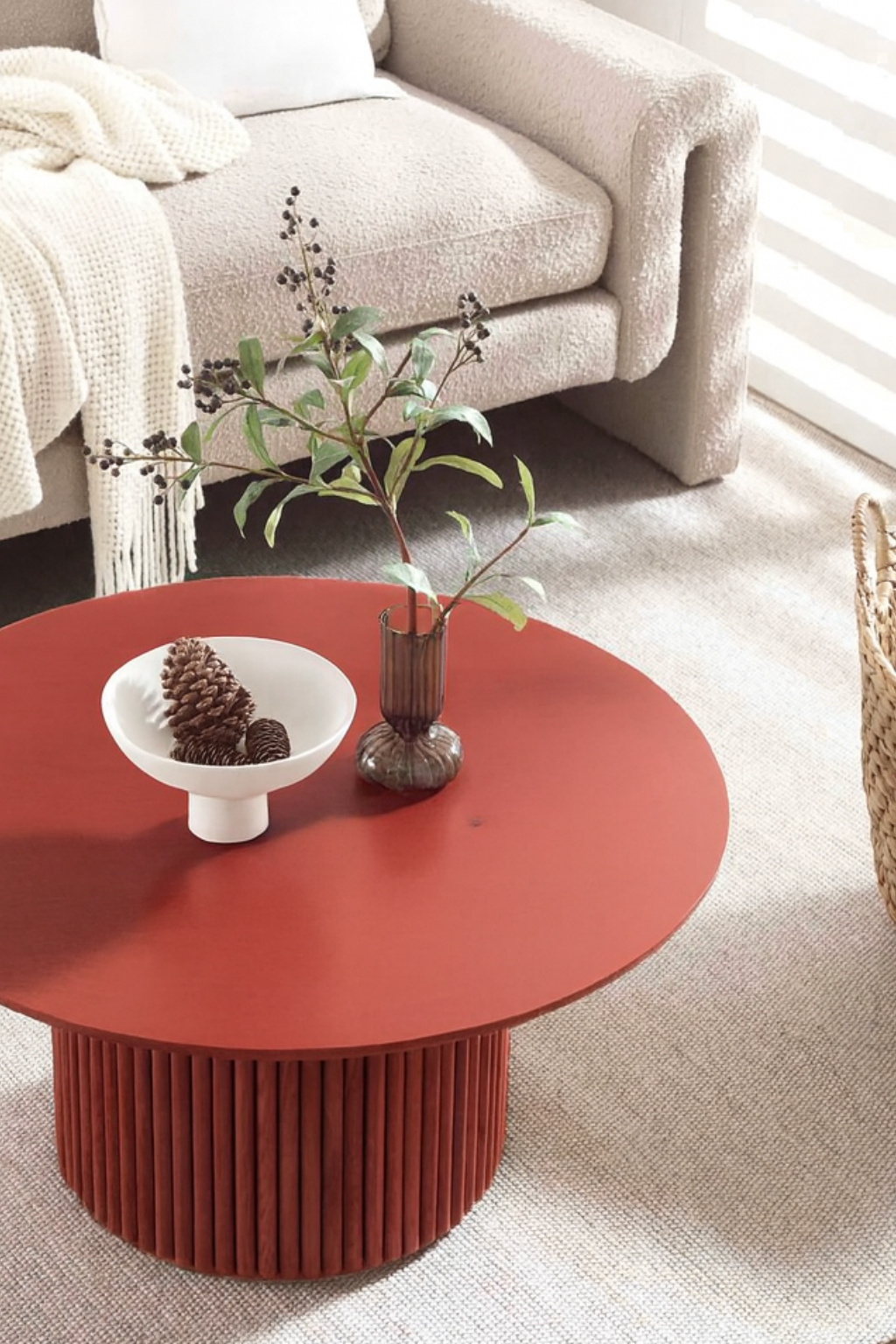 Crafted from solid wood, the Thrissur Coffee Table features a distinctive patterned base that combines aesthetic appeal with structural strength. Designed for durability, it offers a robust surface ideal for everyday use, making it a reliable centerpiece in your living space.